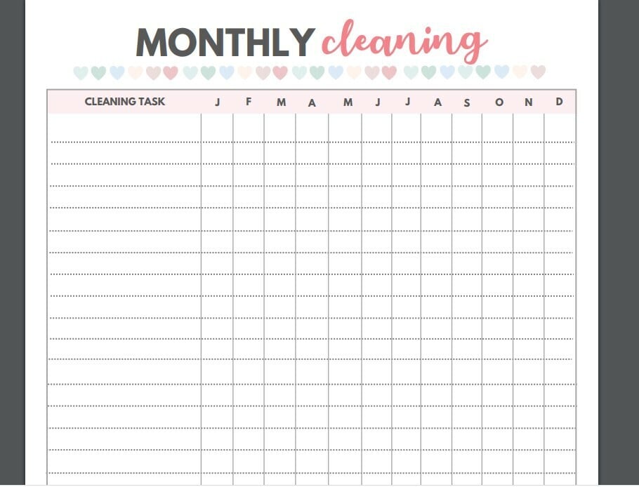 Yearly Cleaning Chart